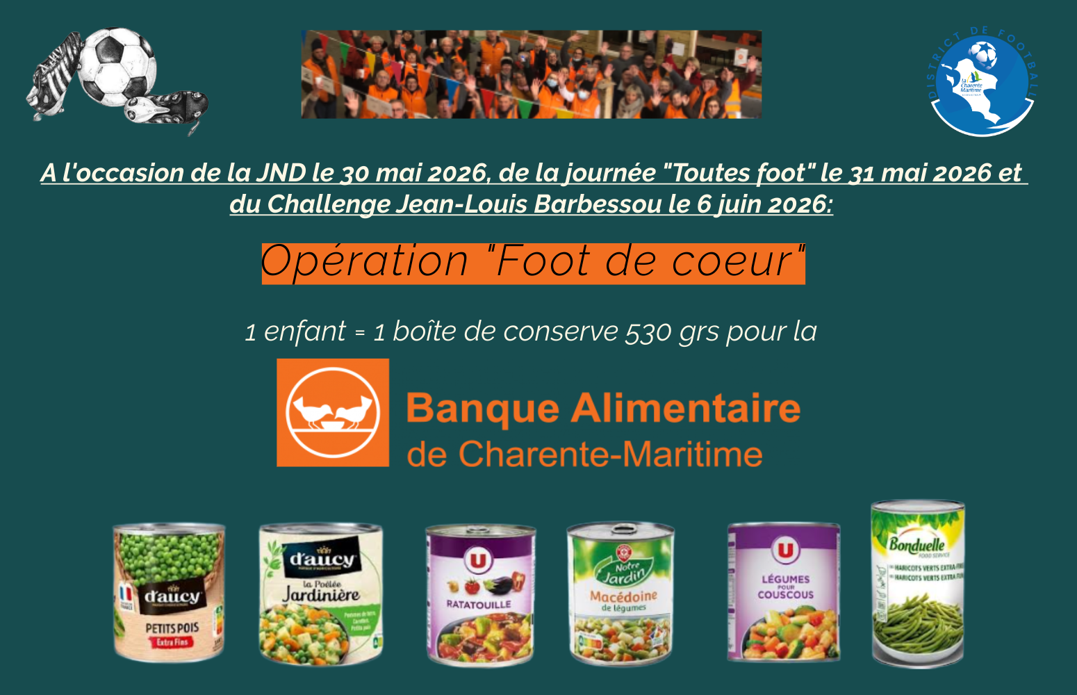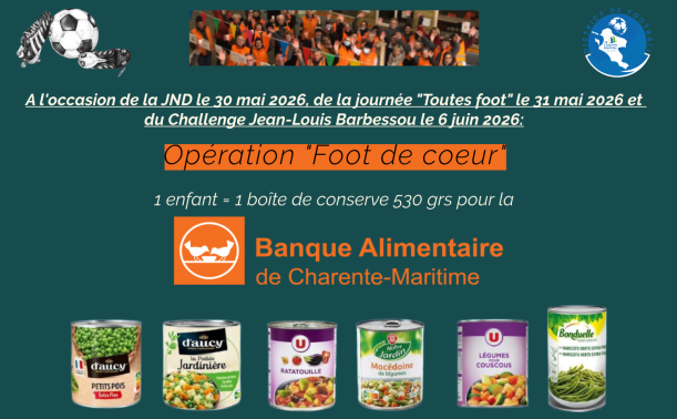 LE DISTRICT DE FOOTBALL DE LA CHARENTE-MARITIME SOLIDAIRE DE LA BANQUE ALIMENTAIRE